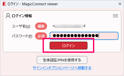 ビューアアプリを起動し、ログインを実行します。