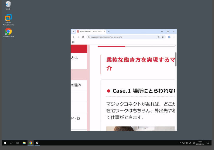 で、手元端末が iPad や Androidタブレット の場合には、ビューアアプリが Ver9.1以降 であれば、外部モニターにWindowsデスクトップを表示させ、Windows PCのような操作も可能です。