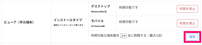 にインストールするタイプのビューアアプリについて、契約の範囲内で、登録可能な手元端末の台数を増やすことができます。