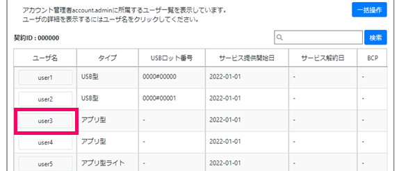 登録可能な手元端末の台数を変更したいユーザを選択します。