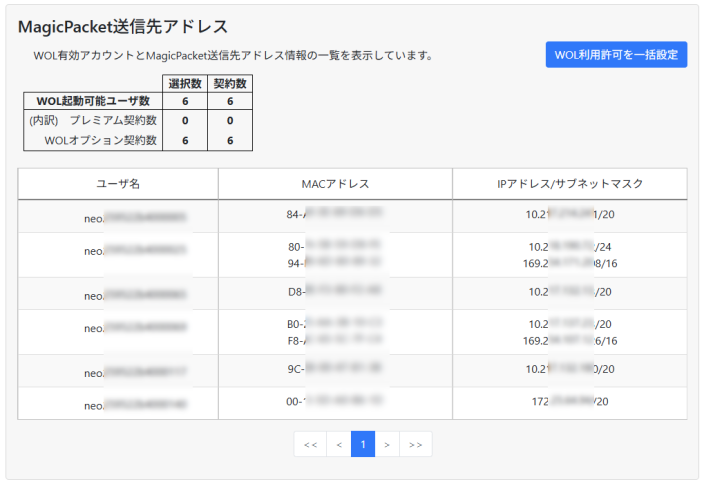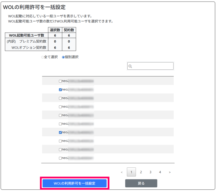 「WOL管理 / WOLの利用許可を一括設定」画面が表示されます。