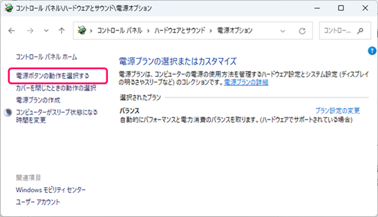[電源ボタンの動作を選択する]をクリックします。