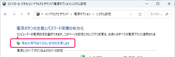 [現在利用可能ではない設定を変更します]をクリックします。