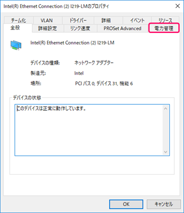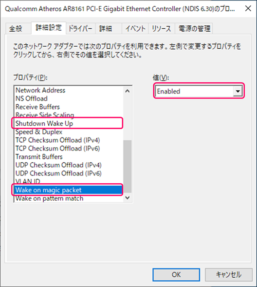 [プロパティ]内のWOL機能に関する項目の設定を行います。