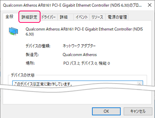 以降のネットワーク アダプターの設定手順は、ネットワーク アダプターの種類によりプロパティの画面が異なります。代表的な例を説明します。