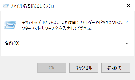 1. 接続先機器で[Win]+[R]キーを押し「ファイル名を指定して実行」画面を表示します。