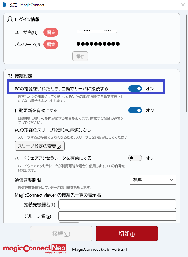 接続先機器(対象機器)の電源を入れて、マジックコネクトの接続を復帰させます。