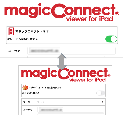 - ログイン画面に「マジックコネクト・ネオ」と「従来モデル」の切り替えスイッチが追加されました。