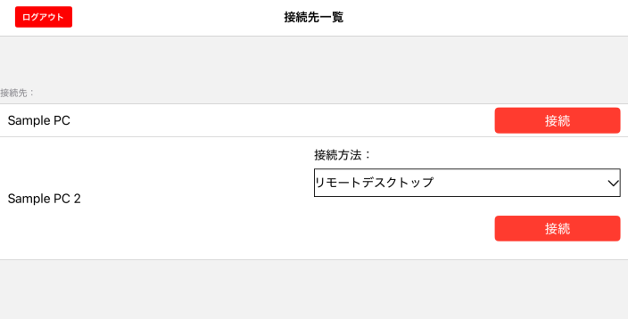 また、接続先機器のクライアントプログラムがVer9.1以降の場合、「接続方法」欄の選択(「リモートデスクトップ」/「WOL」)が不要になりました。